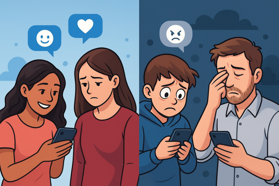 Redes sociais podem ser ferramentas poderosas para conexão, aprendizado e apoio emocional, mas também podem gerar ansiedade, estresse e insatisfação.